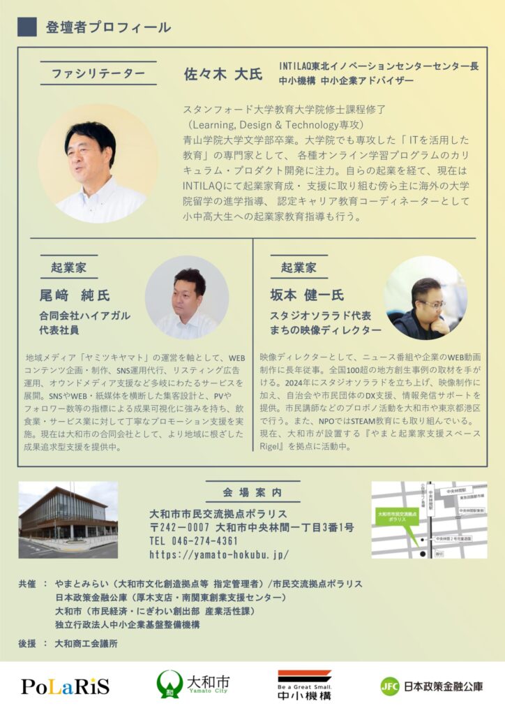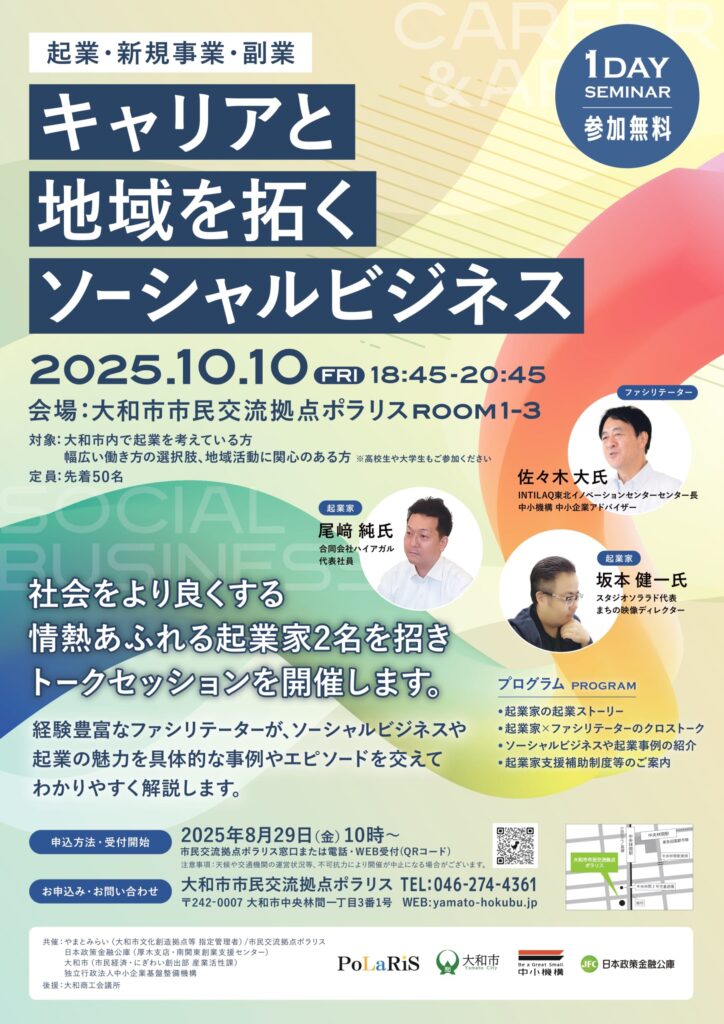 【キャリアと地域を拓くソーシャルビジネス】大和市内で起業家として登壇致します。